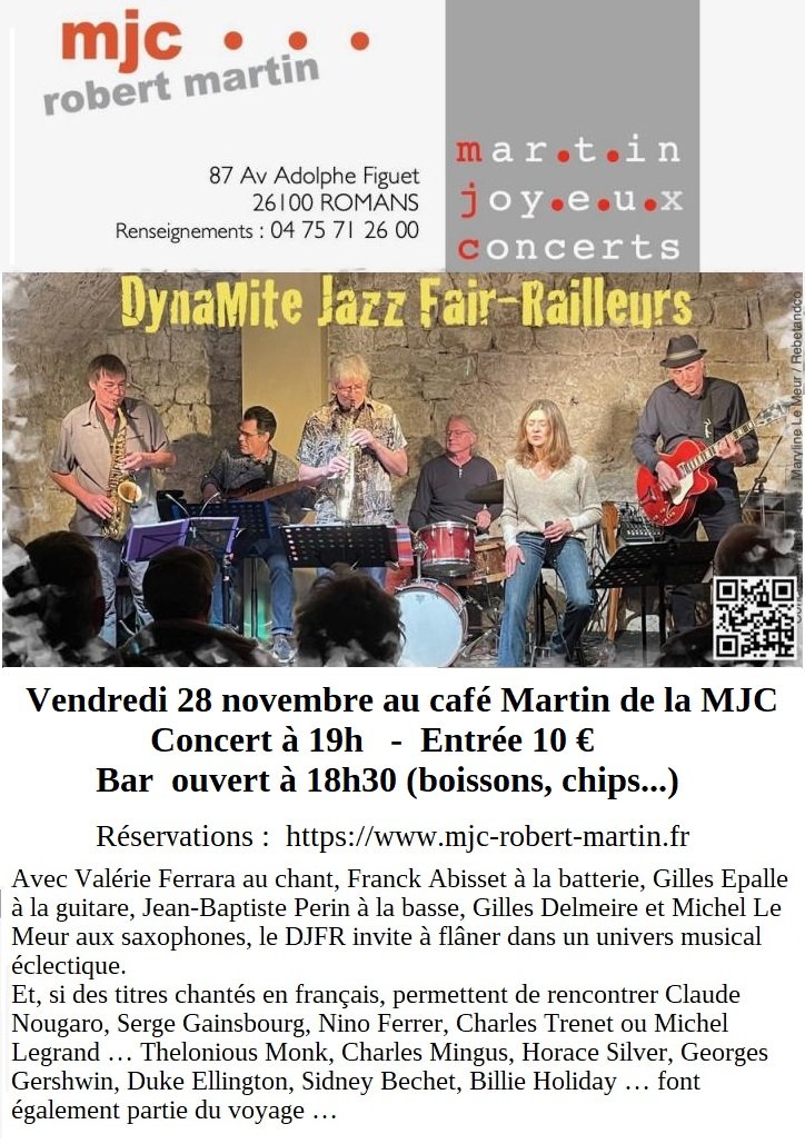 Pour la nouvelle saison seront programmés au Café Martin au minimum un concert par mois, jazz, musique du monde, chants ...avec des groupes et des artistes des environs (très élargis) de Romans.